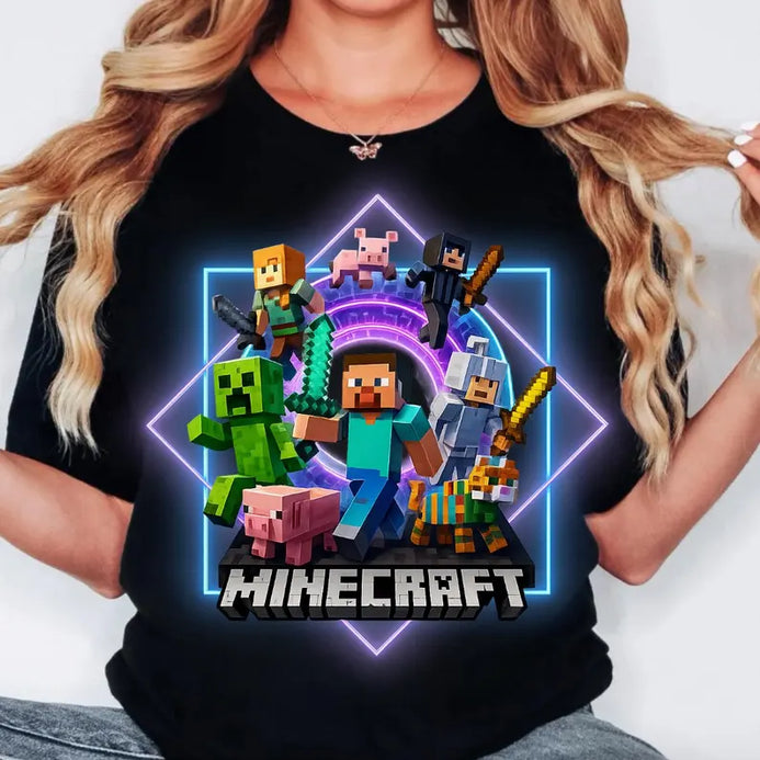 - Trending Movie Shirt Movie Main Characters Group Shirt Shot Cartoon Style Shirt Game Character Shirt Pixel Gamer Squad Mine A Minecraft movie Birthday