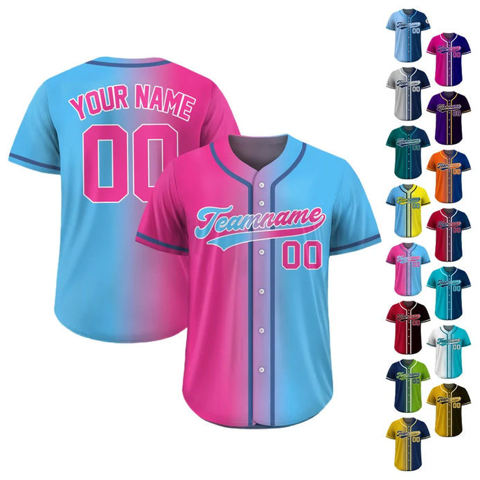 Custom Baseball Jersey Gradient with Teamname Name Number, Custom Jersey Shirt for Men Women Youth Kid, Gift for Baseball Fans Pink Blue