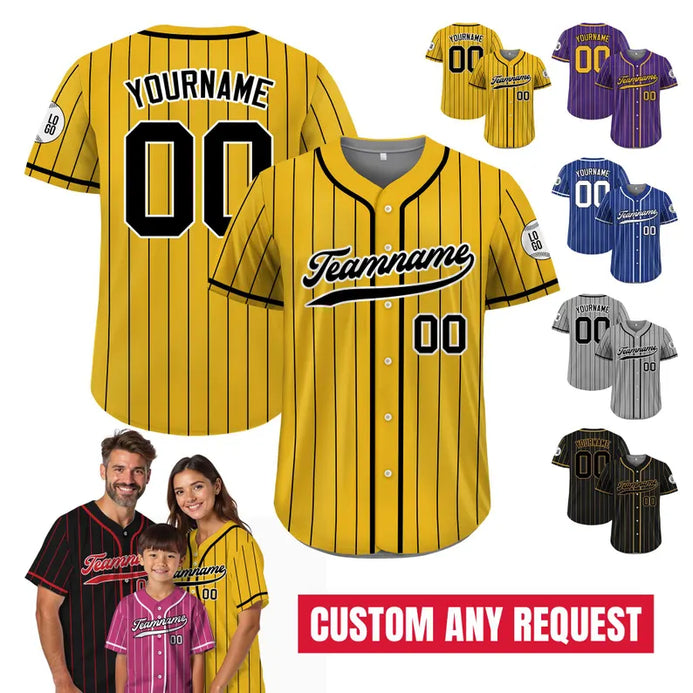 Custom Baseball Jersey with Teamname Name Number, Jersey for Men Women Youth, Personalized Pinstripe Yellow Black Button Down Jersey
