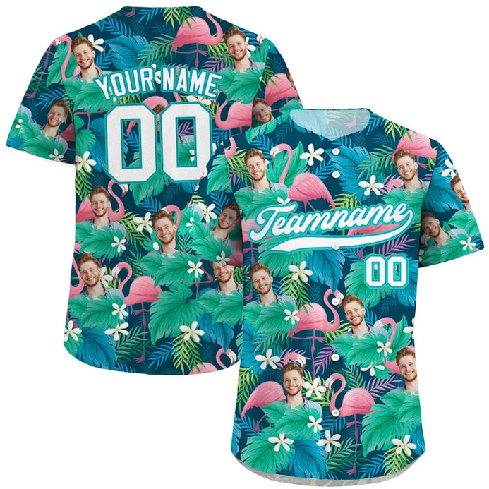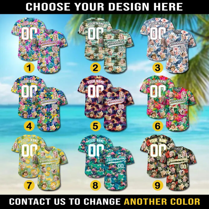 Custom Hawaiian Baseball Jersey with Face Teamname Name Number, Personalized Hawaii Floral Shirt for Men Women Youth Preschool Button Shirt