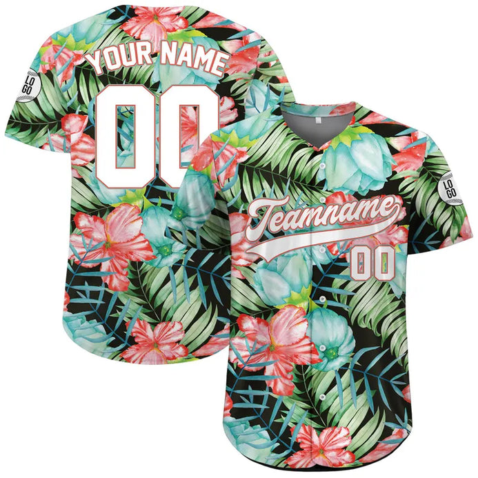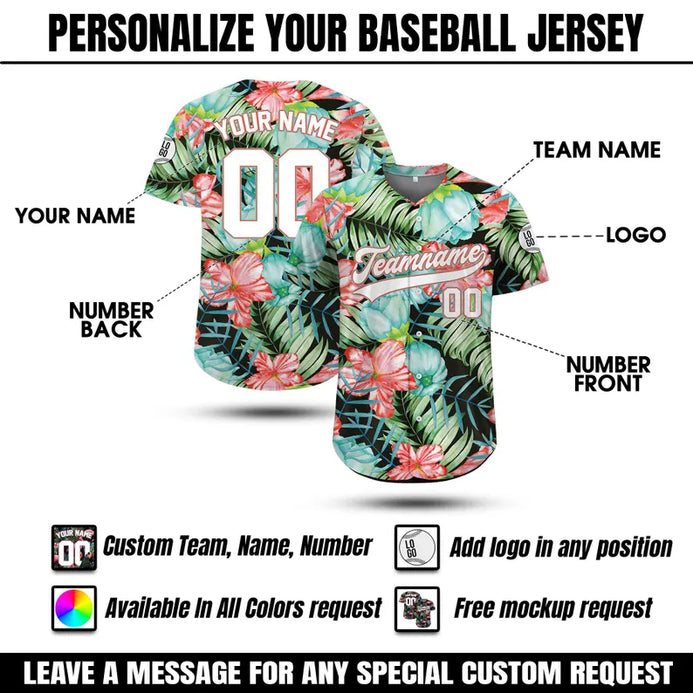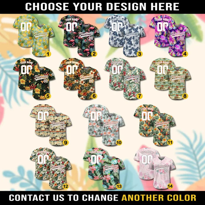 Custom Hawaiian Baseball Jersey with Team Name Number Logo, Personalized Hawaii Floral Shirt for Men Women Youth Preschool Button Shirt