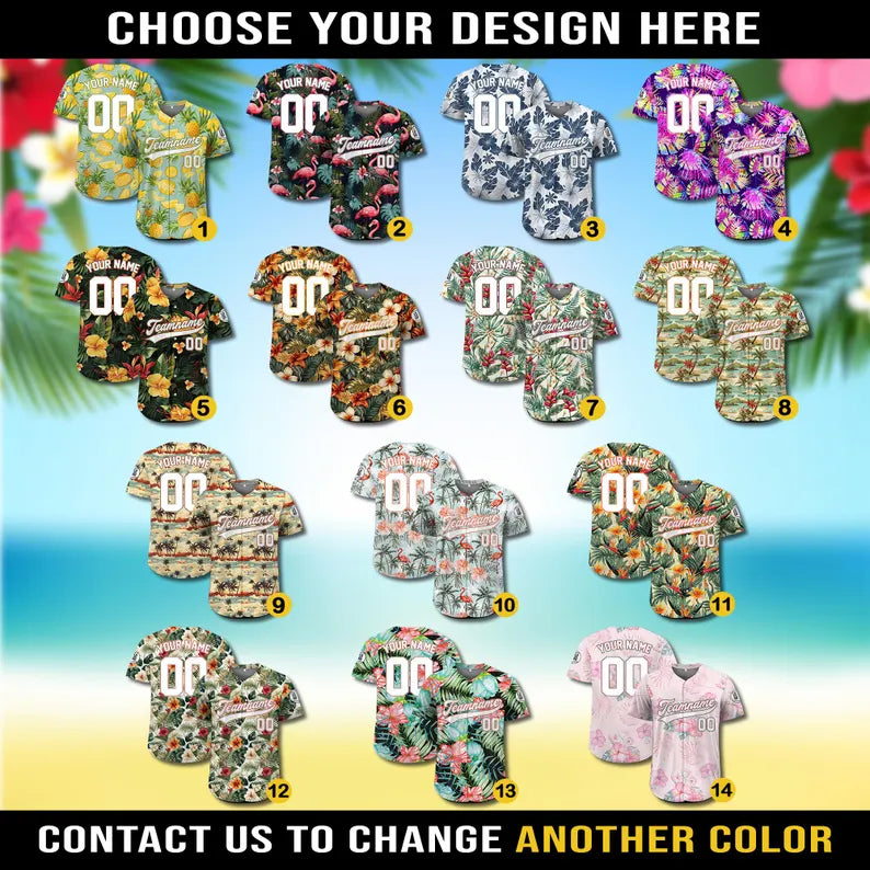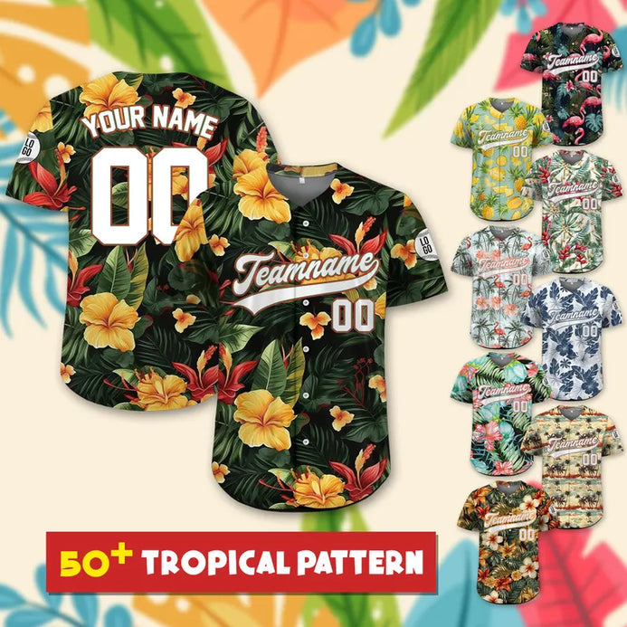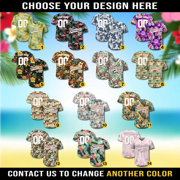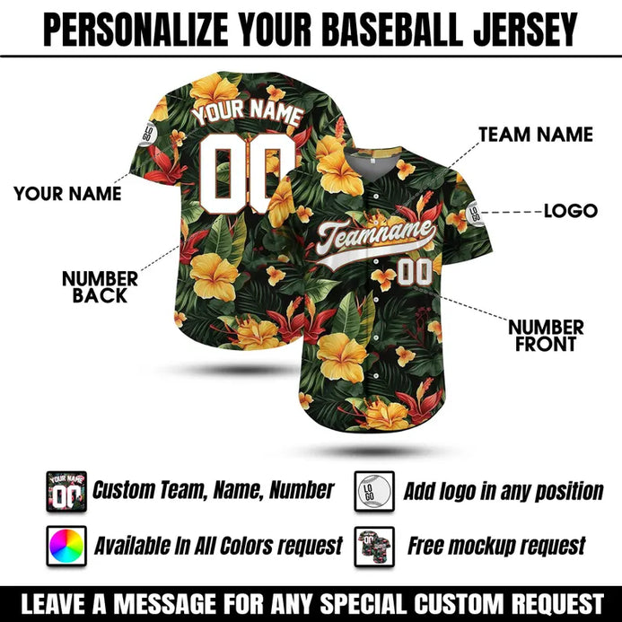 Personalized Hawaiian Baseball Jersey with Team Name Number, Custom Hawaii Floral Shirt for Men Women Youth Kid Jersey Button Down Shirt